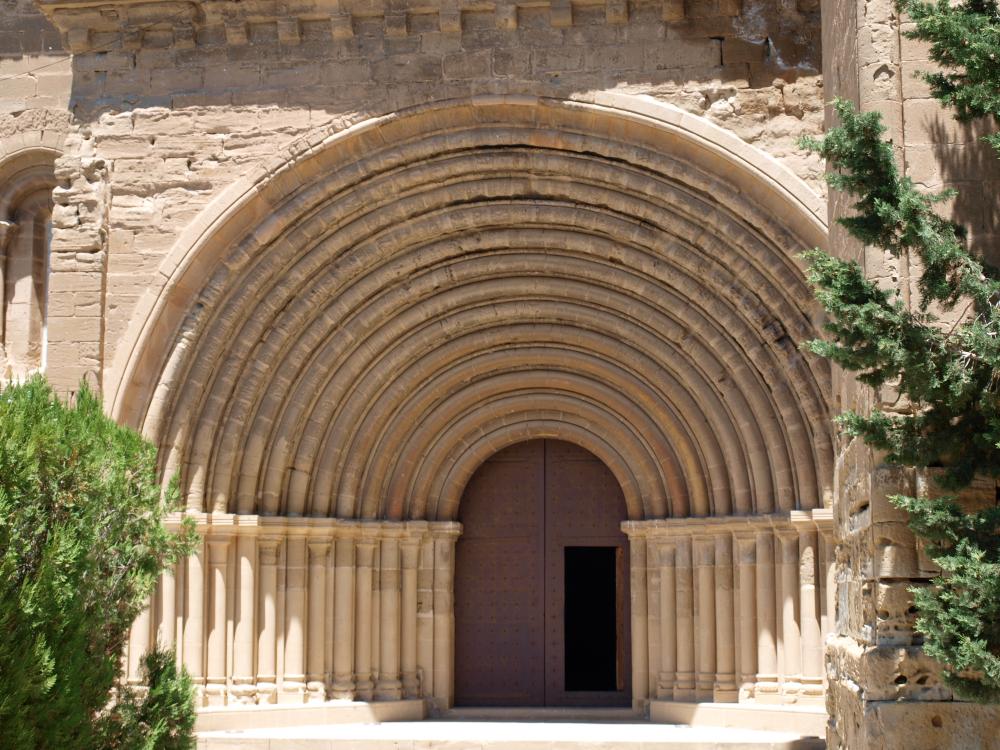 Al fondo, la conocida portada de las arquivoltas de Sijena.